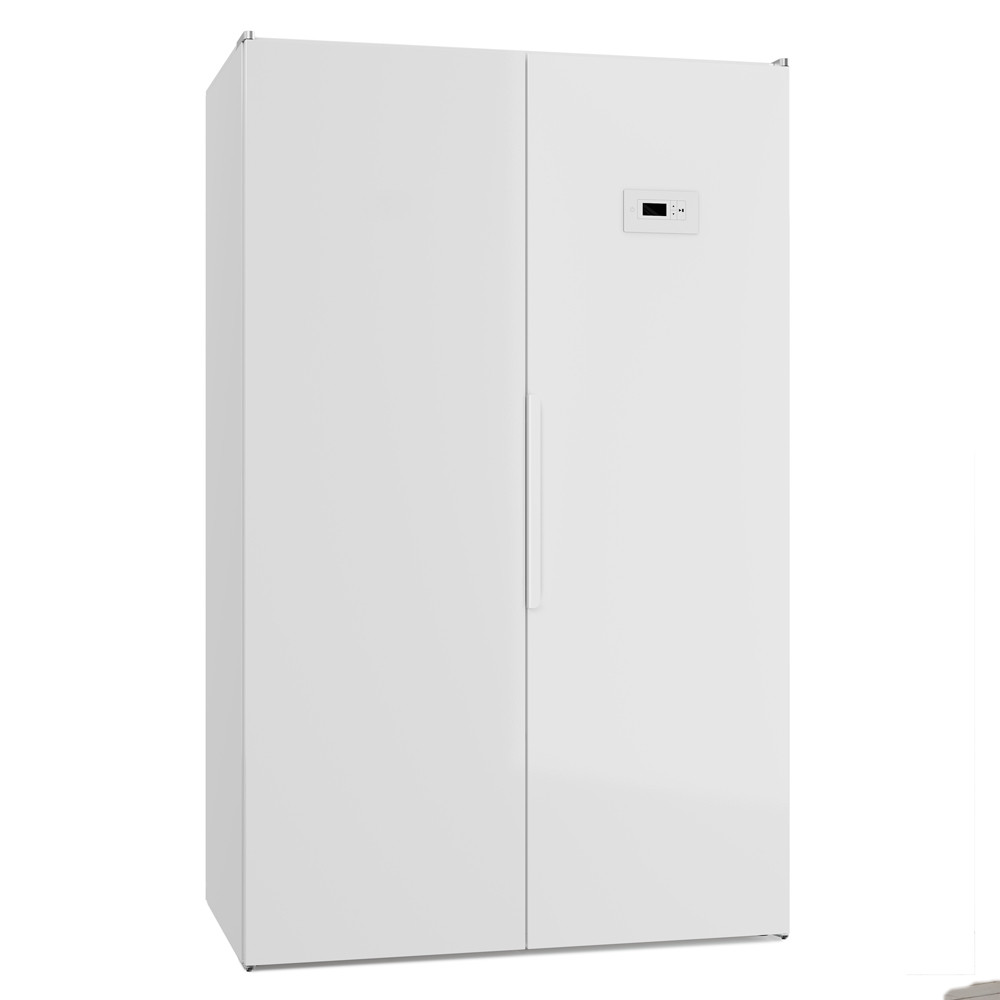 Der Schrank wird standardgemäss ohne Stromkabel geliefert. Der Lieferumfang umfasst zwei Teile; einen Schrankteil im unteren Bereich und einen oberen Teil. Im oberen Teil sind alle technischen Komponenten eingebaut. Er benötigt Starkstrom (400 V / 3 Phasen / 2300 W) und sollte von einem Elektriker fachmännisch angeschlossen und mit einem passenden Kabel sowie Stecker montiert werden. Die Anlieferung erfolgt per LKW bis zur Bordsteinkante.